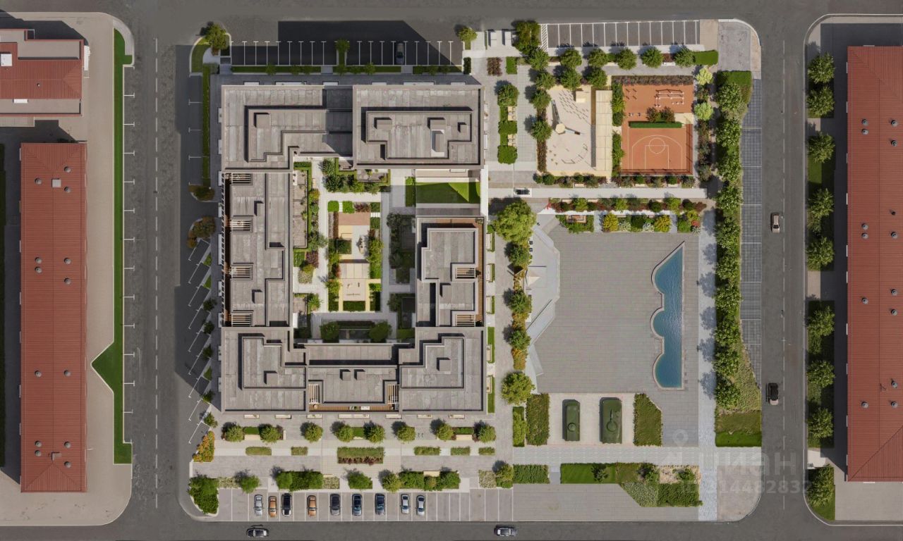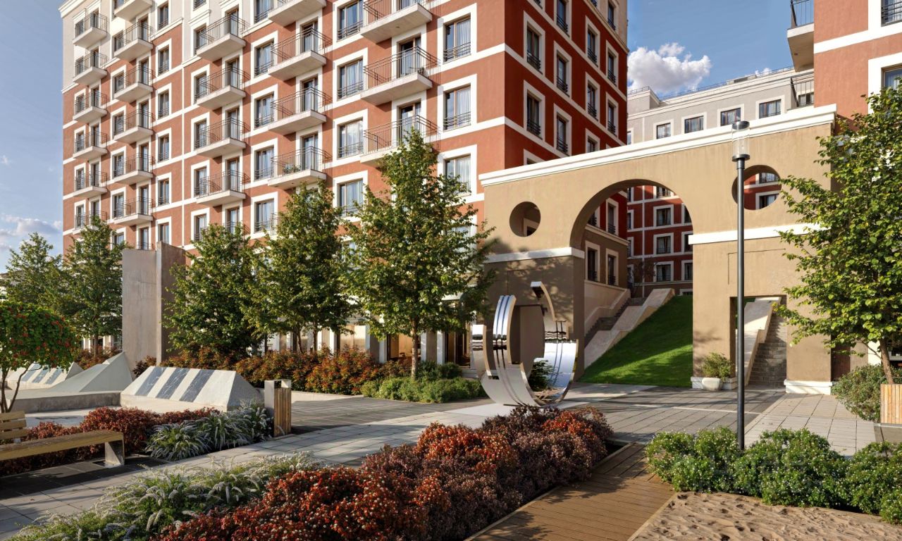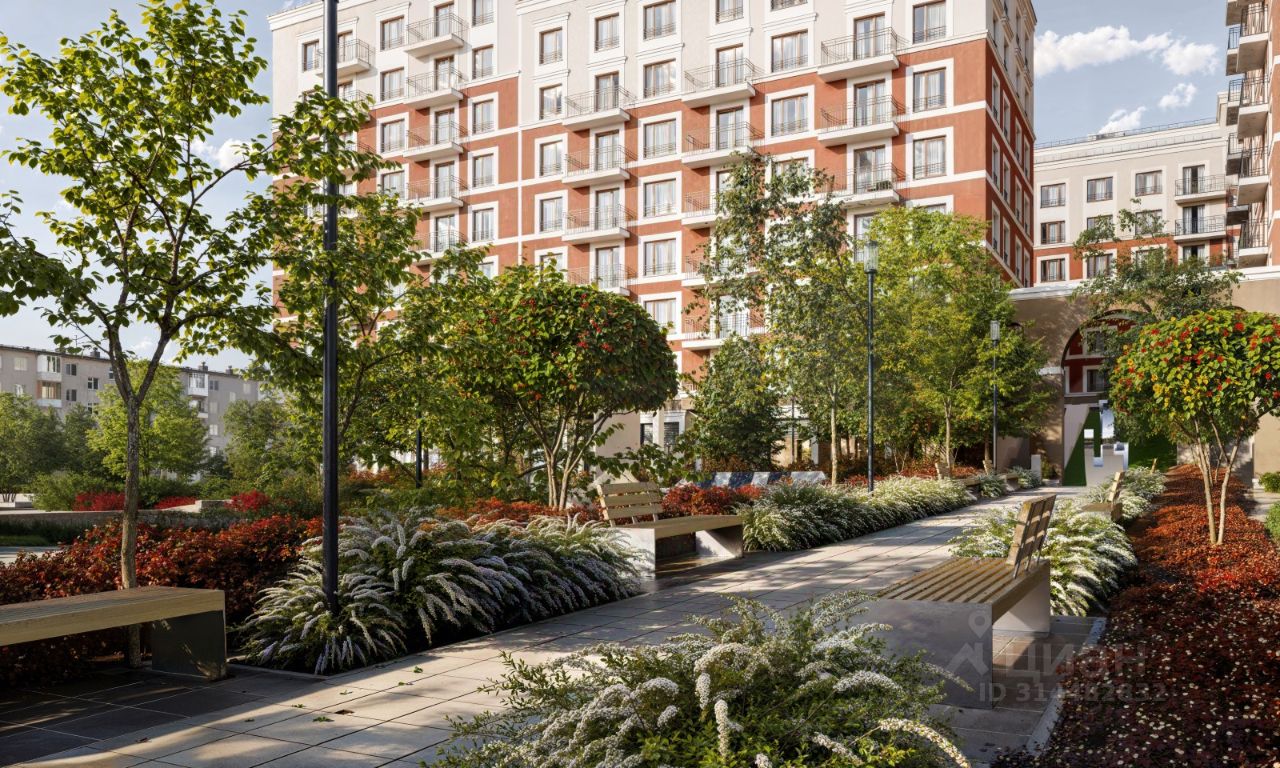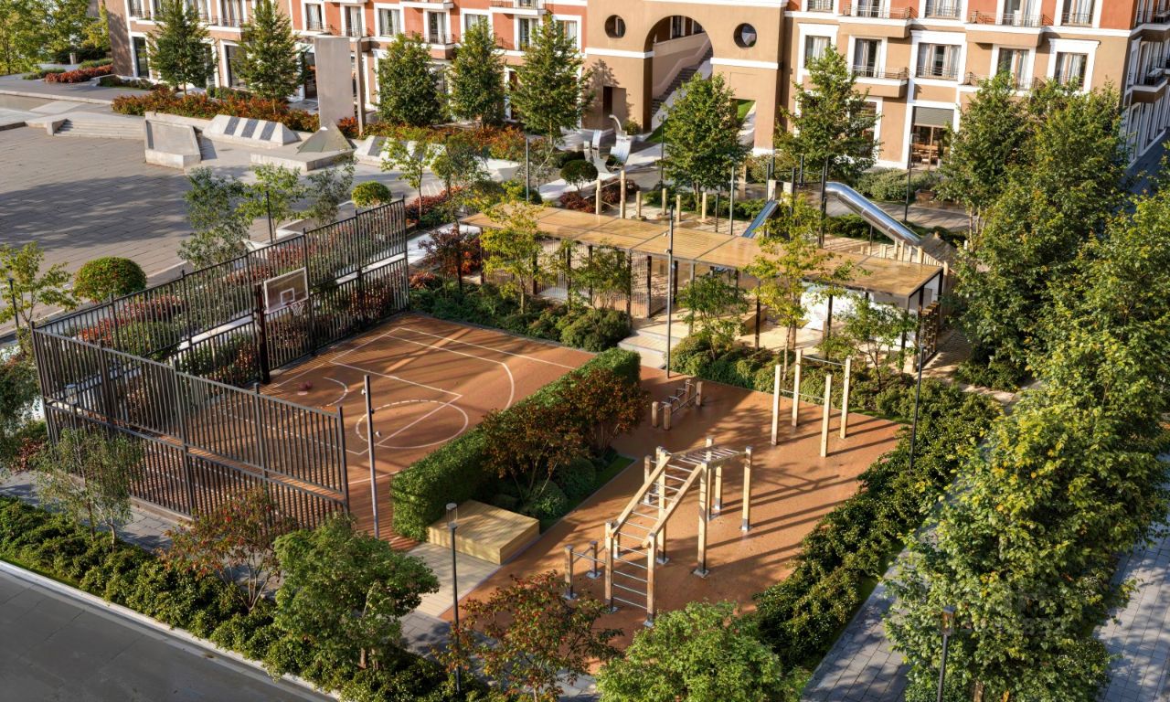 Двор с выходом в сквер Двор - это приватное пространство для жителей, закрытое от машин. В нём спроектированы детская и спортивная площадки, выполненные из натуральных материалов, а также зоны отдыха. Прямой выход в городской сквер расширяет функционал двора. Жители смогут быстро попадать в общественную зону с фонтаном, детскими и спортивными площадками и местами для отдыха. Большую часть территории двора занимает зелень. Озеленение выполнено в стиле пэчворк, и вдохновлено техникой лоскутного шитья. Отдельные фрагменты ландшафта, подобно лоскутам, гармонично складываются в планировочные элементы, а затем формируют цельную композицию. Растения представлены различными видами деревьев, кустарников, а также цветущими многолетниками. Зелень и стены дома выступают в к