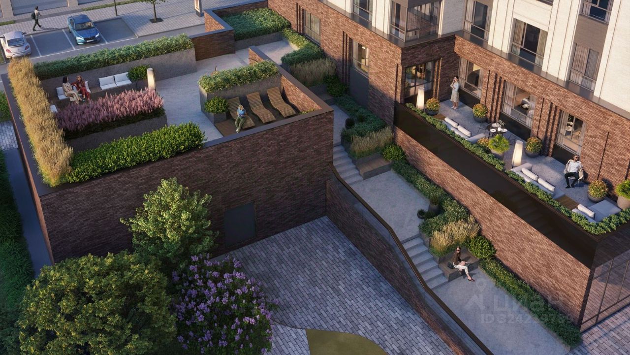 Квартал состоит из четырех 27-этажных домов. В домах — уютные студии, однокомнатные, двухкомнатные, семейные трехкомнатные квартиры. А для ценителей редких форматов квартиры с террасами. Парадный вестибюль с камином и кафе, двор с лаунж-зонами, фонтаном, сенсорным садом, детскими и спортивными площадками внутри.