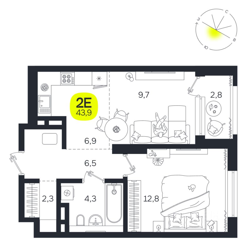 Общая площадь43,9 м2