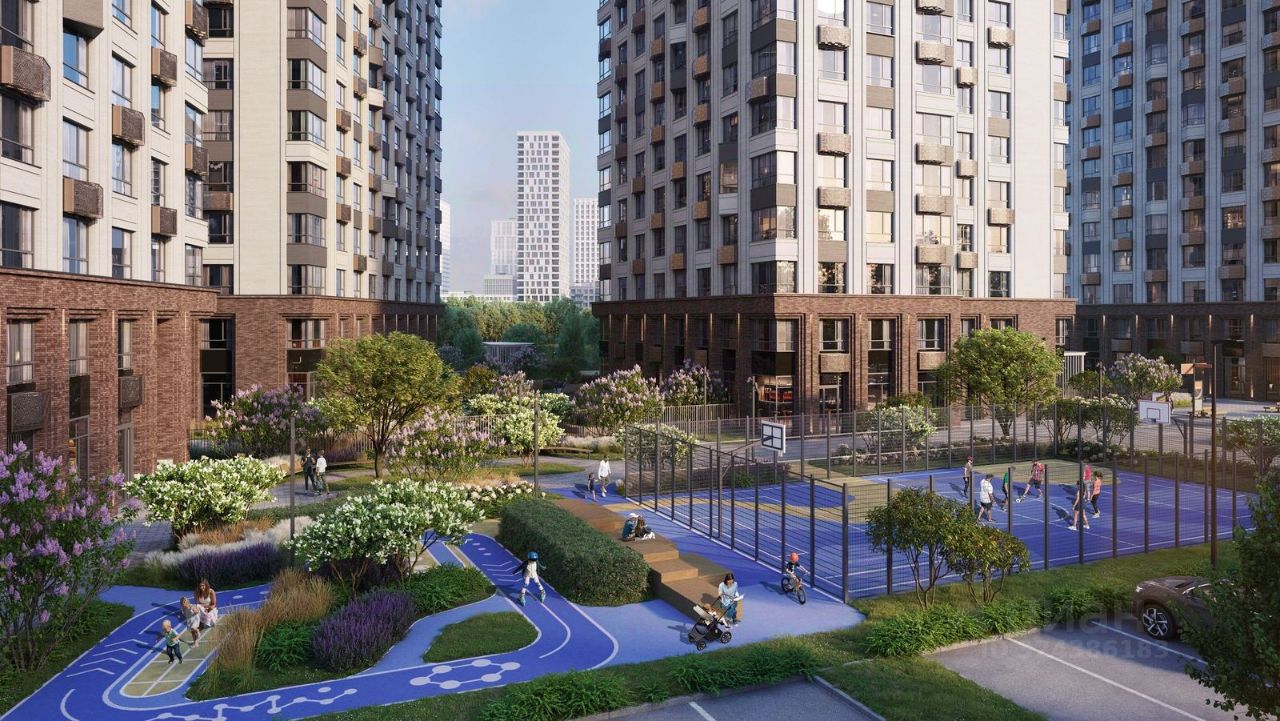 Квартал состоит из четырех 27-этажных домов. В домах — уютные студии, однокомнатные, двухкомнатные, семейные трехкомнатные квартиры. А для ценителей редких форматов квартиры с террасами. Парадный вестибюль с камином и кафе, двор с лаунж-зонами, фонтаном, сенсорным садом, детскими и спортивными площадками внутри.